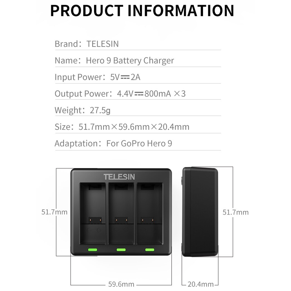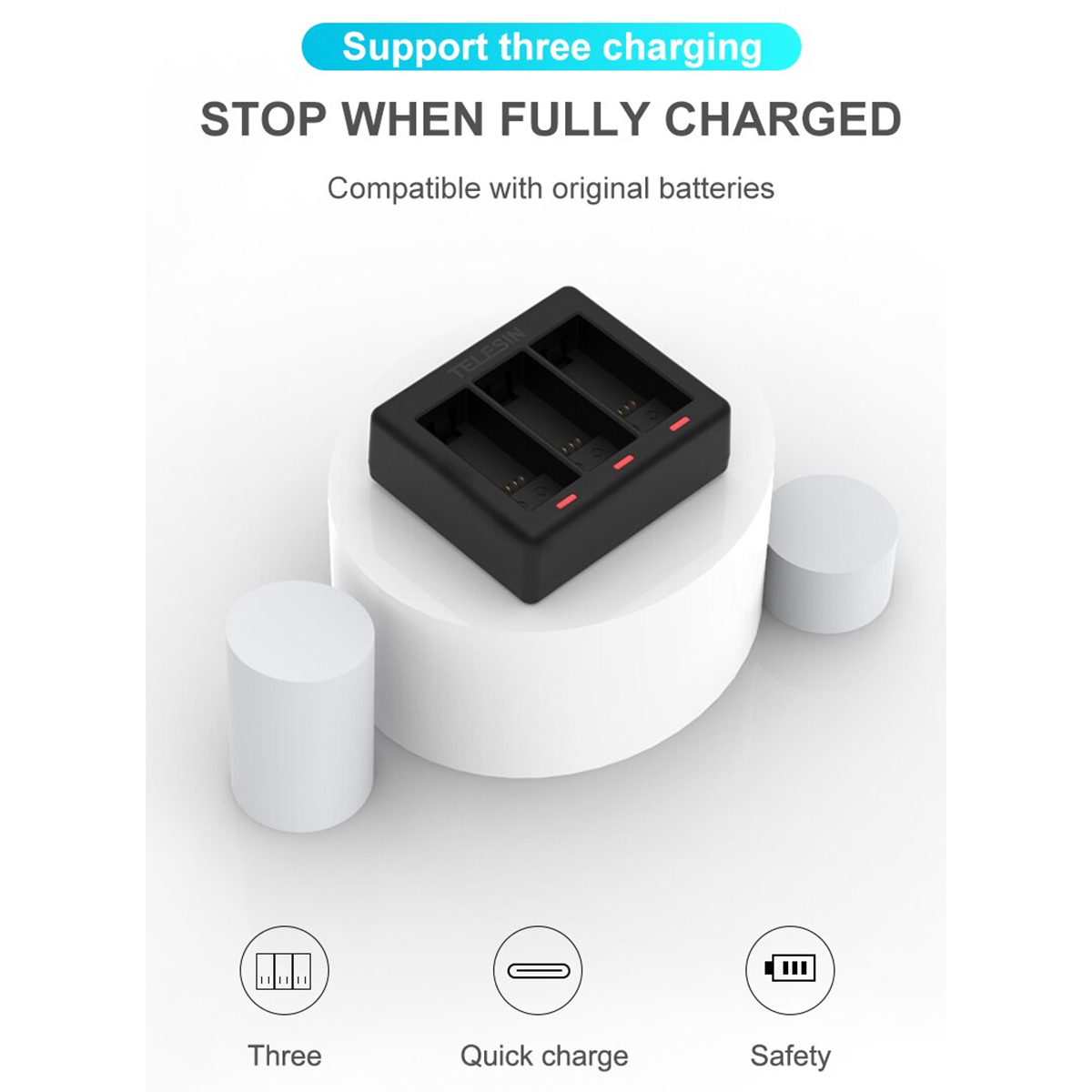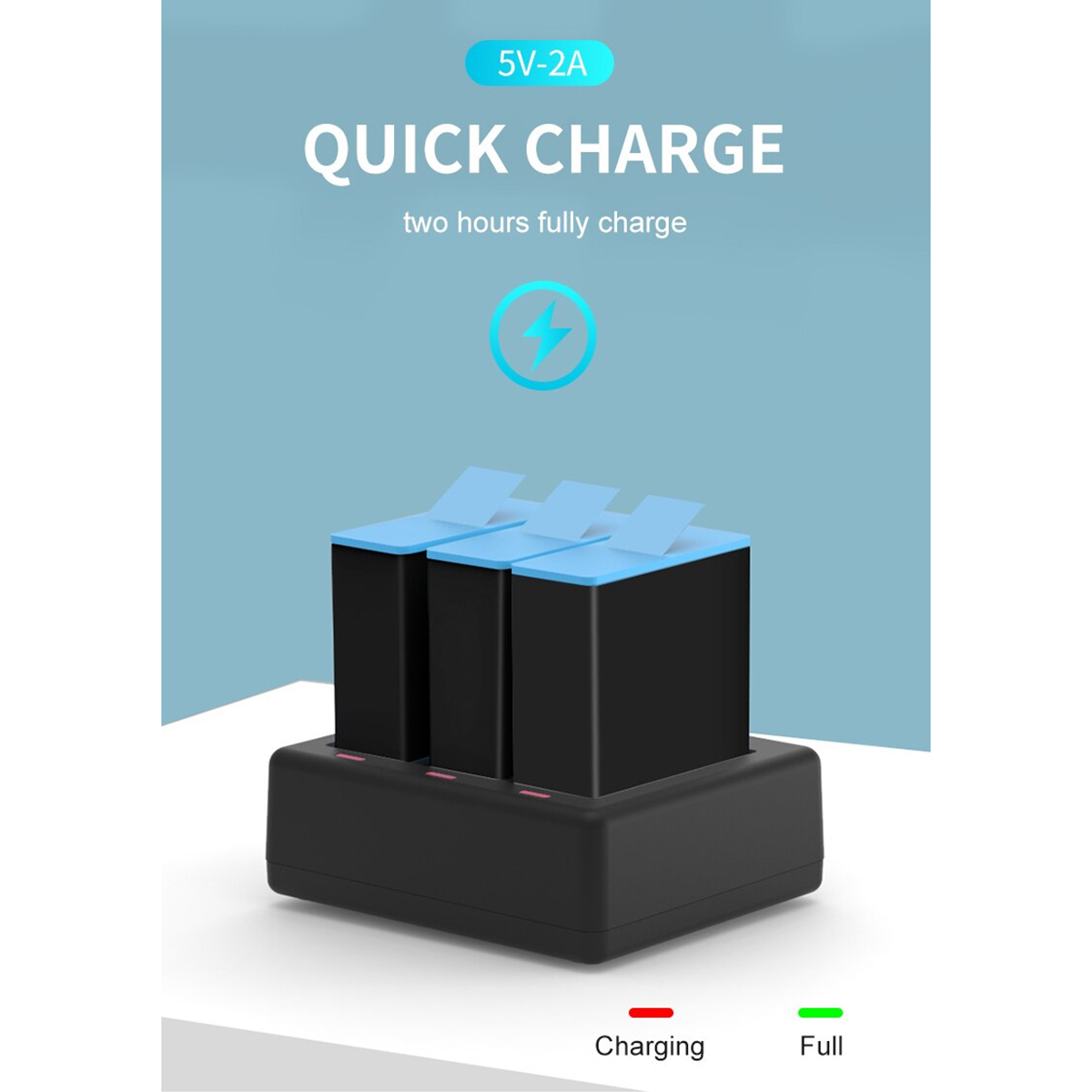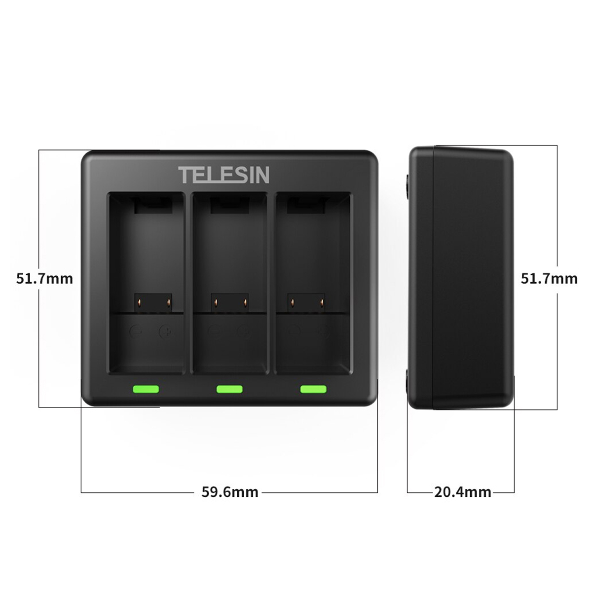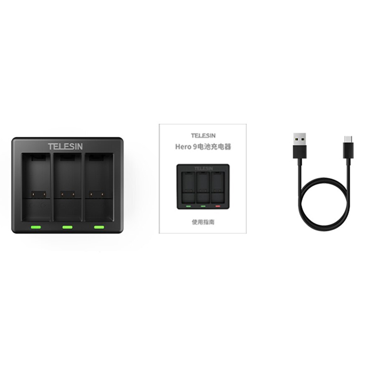 B – Carregador de Baterias Triplo para a GoPro HERO9, HERO10, HERO11 e HERO12 Black