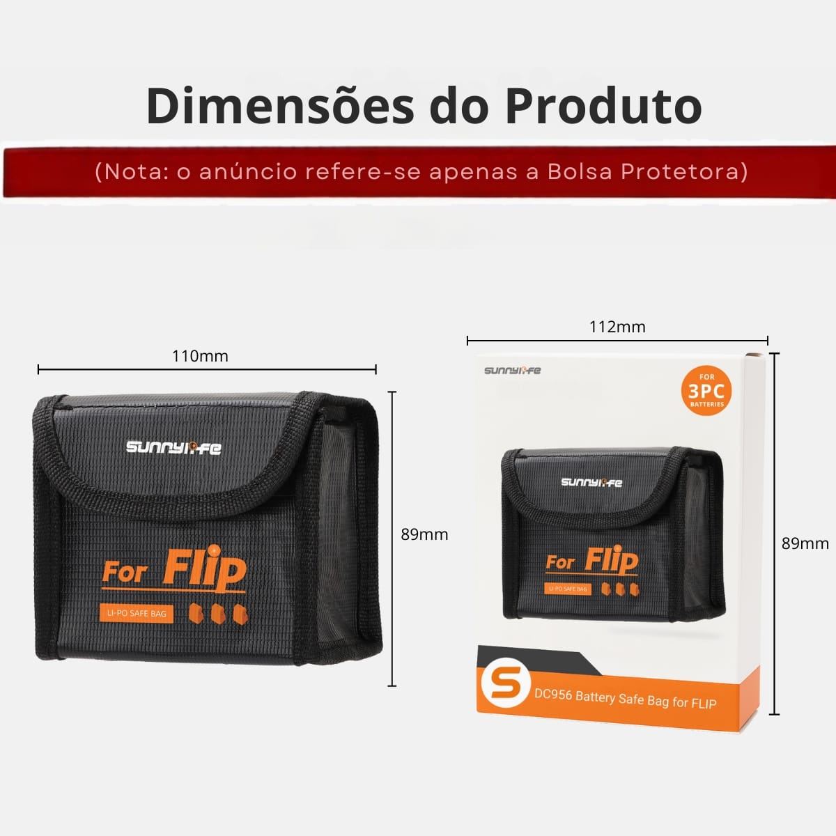 B – Case Bolsa Antichamas para 3 Baterias LiPo do Drone DJI Flip
