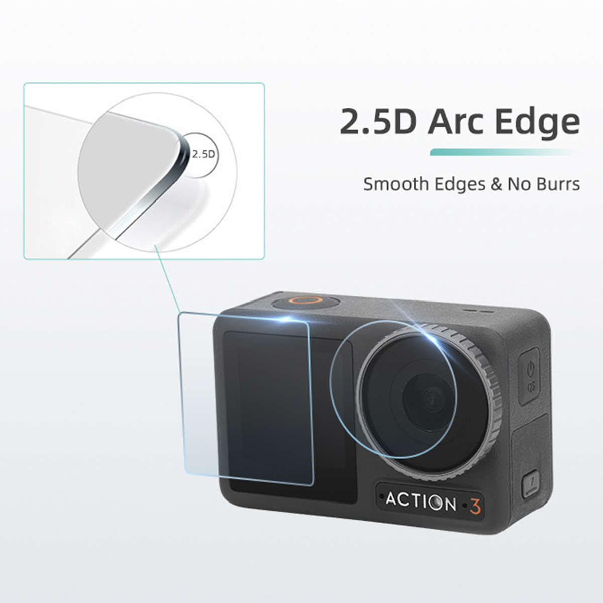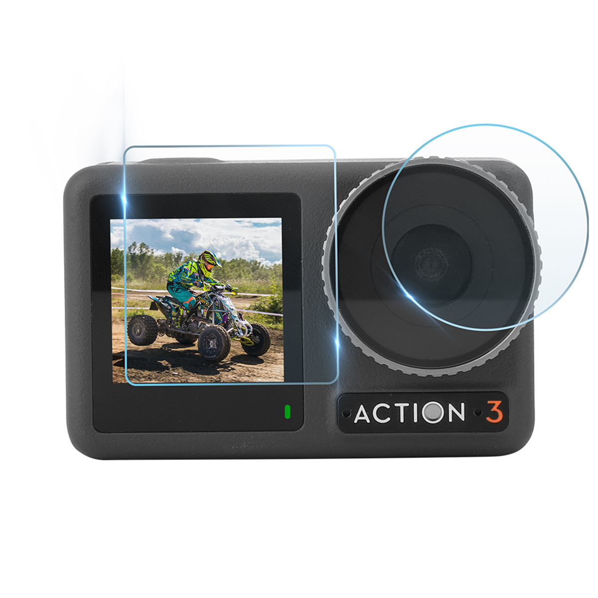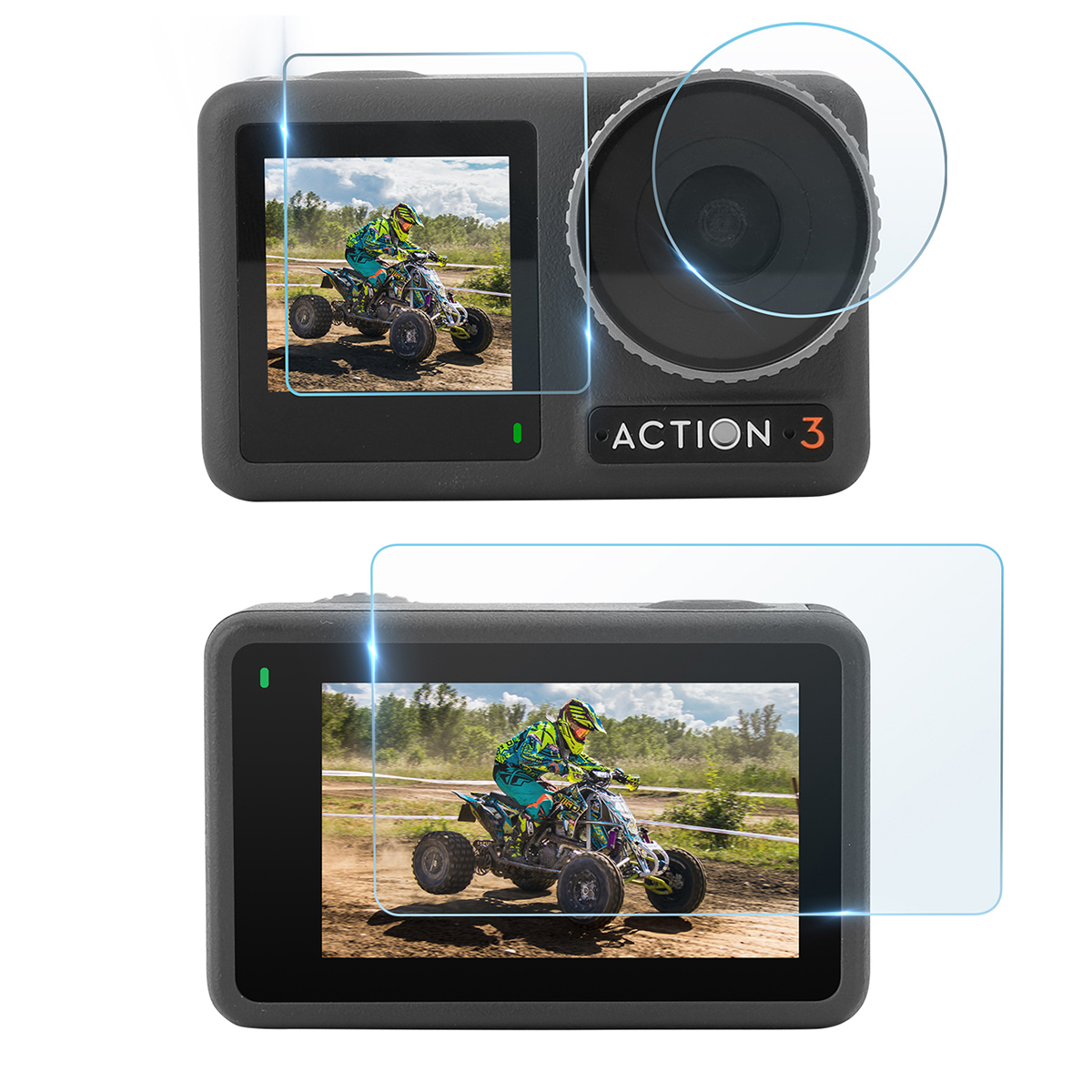 B – Película de Vidro da Lente da Câmera, Tela de LCD Traseira e Visor Frontal para a Osmo Action 3
