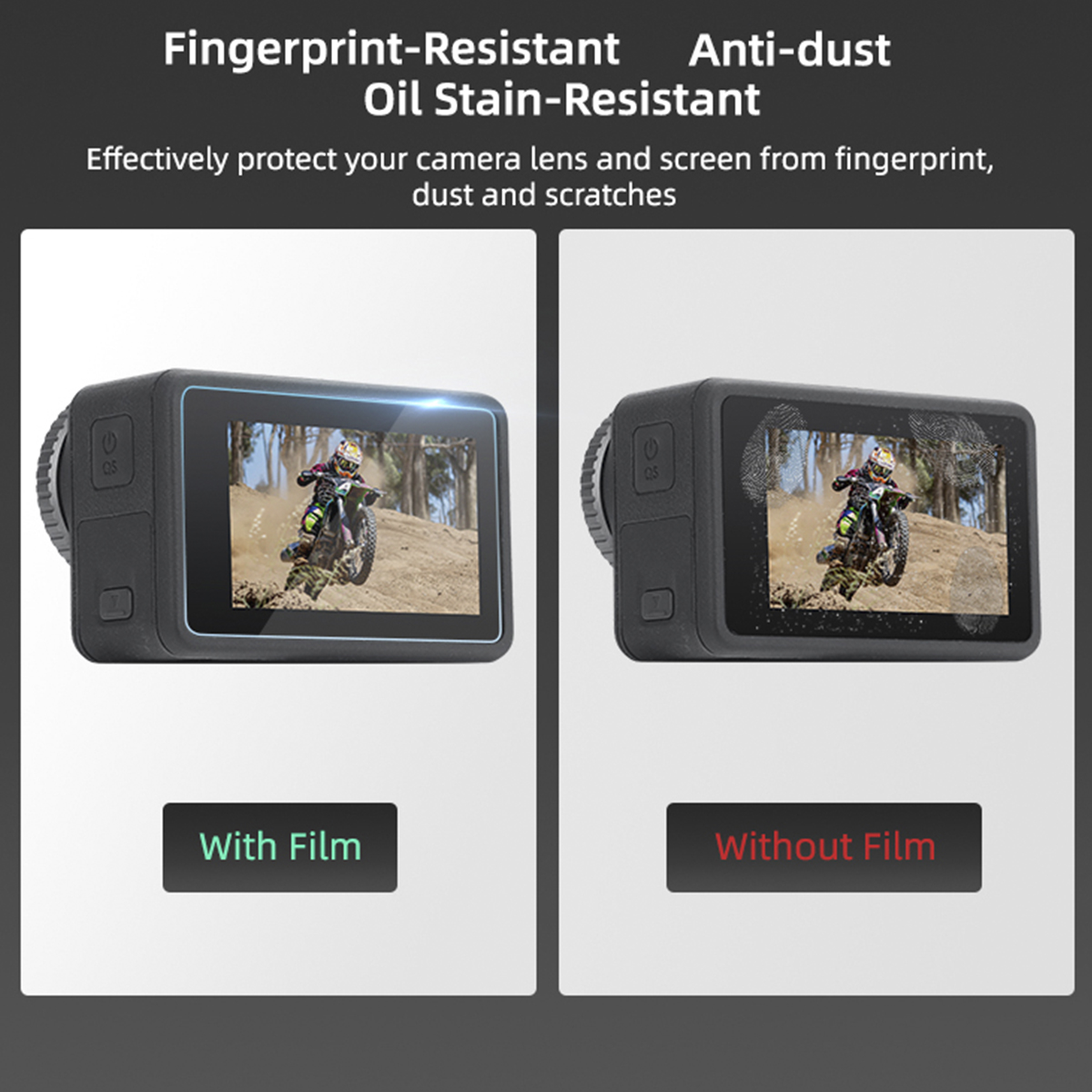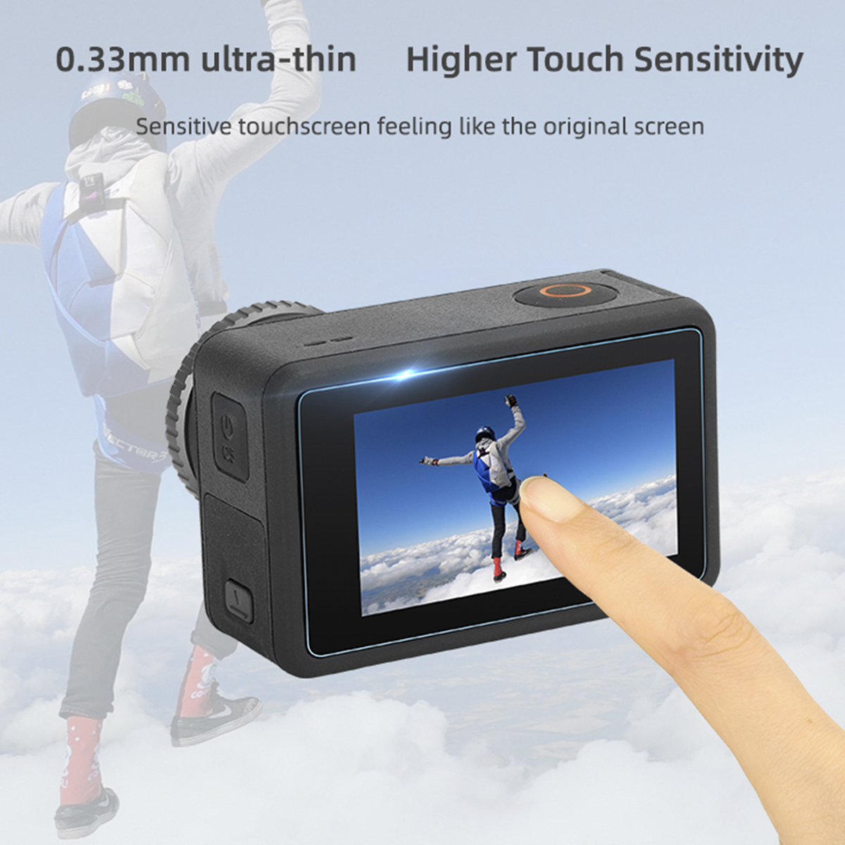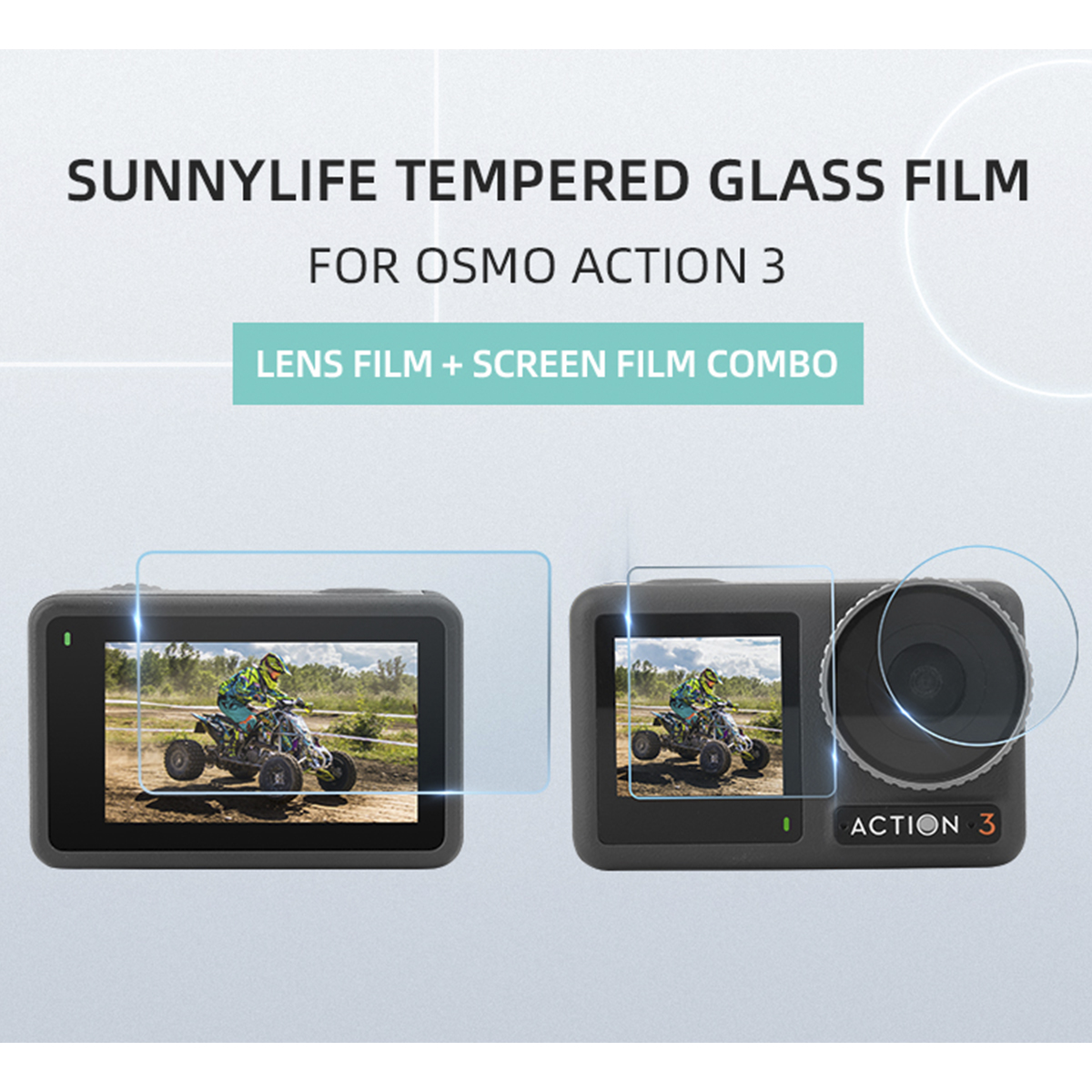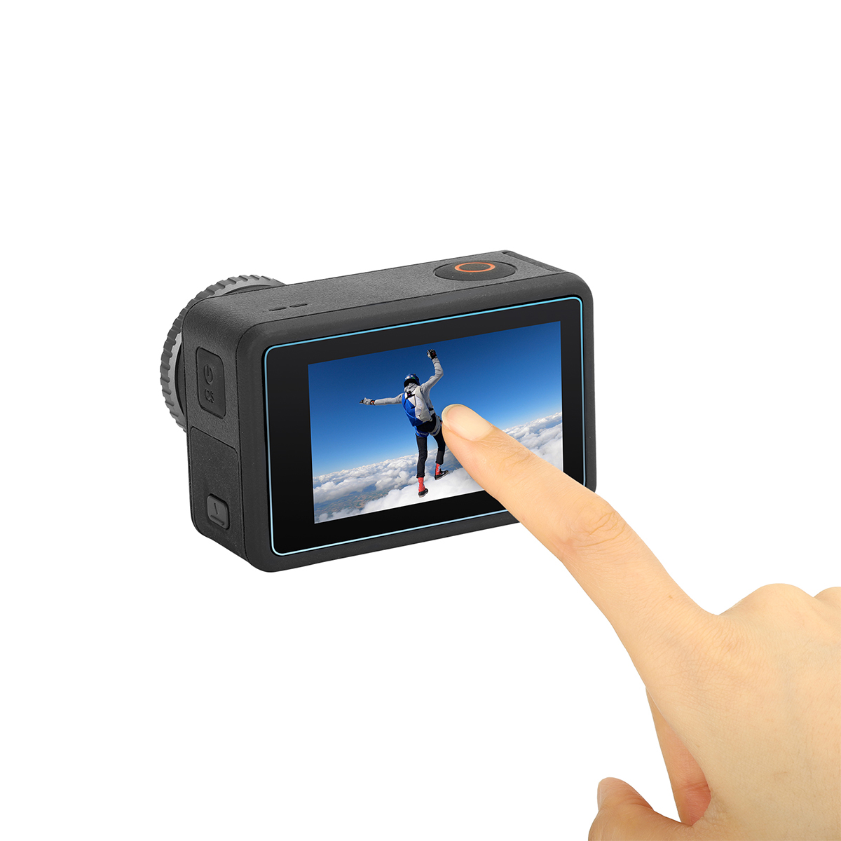 B – Película de Vidro da Lente da Câmera, Tela de LCD Traseira e Visor Frontal para a Osmo Action 3