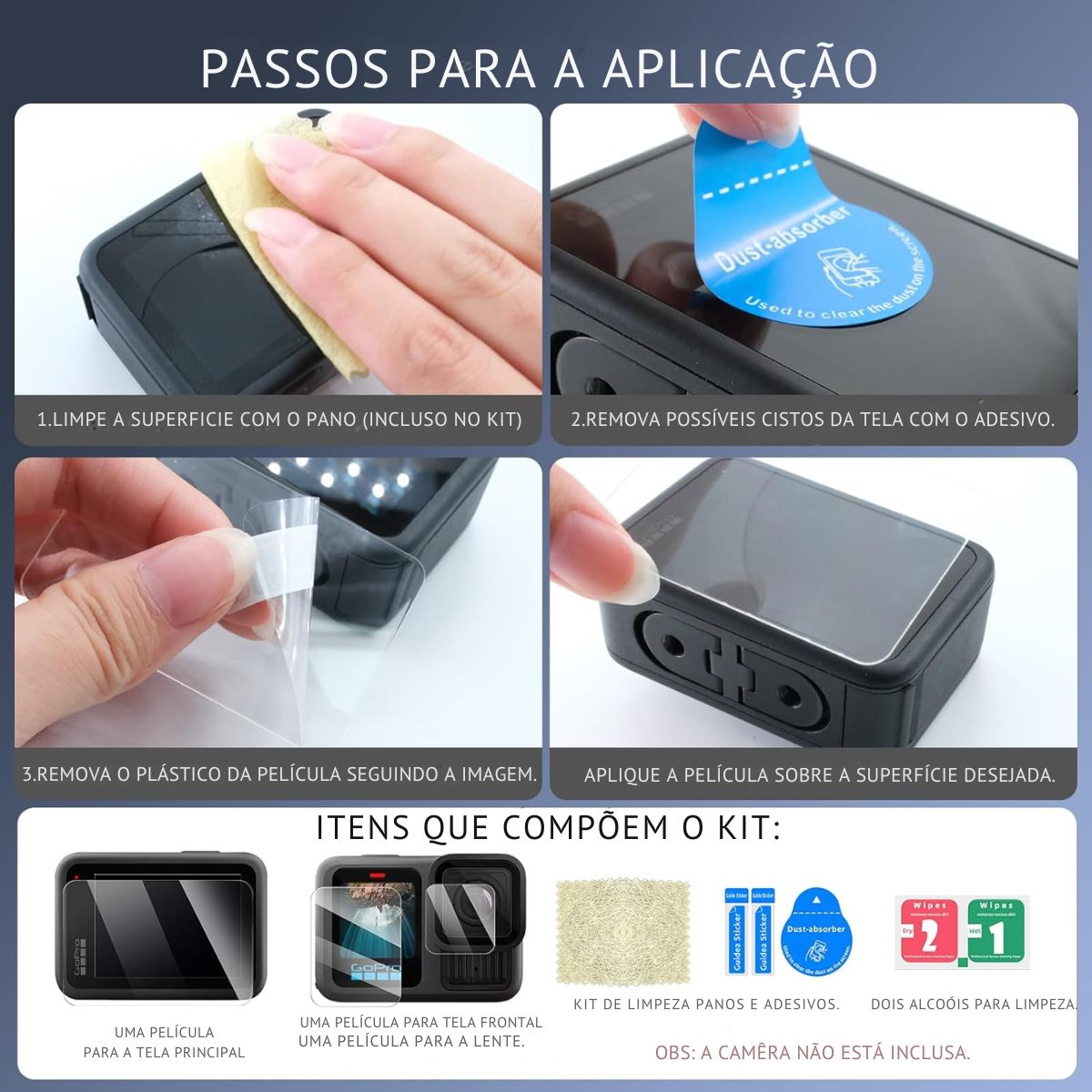B – Película de Vidro da Tela e Lente para a Gopro Hero 13 Black